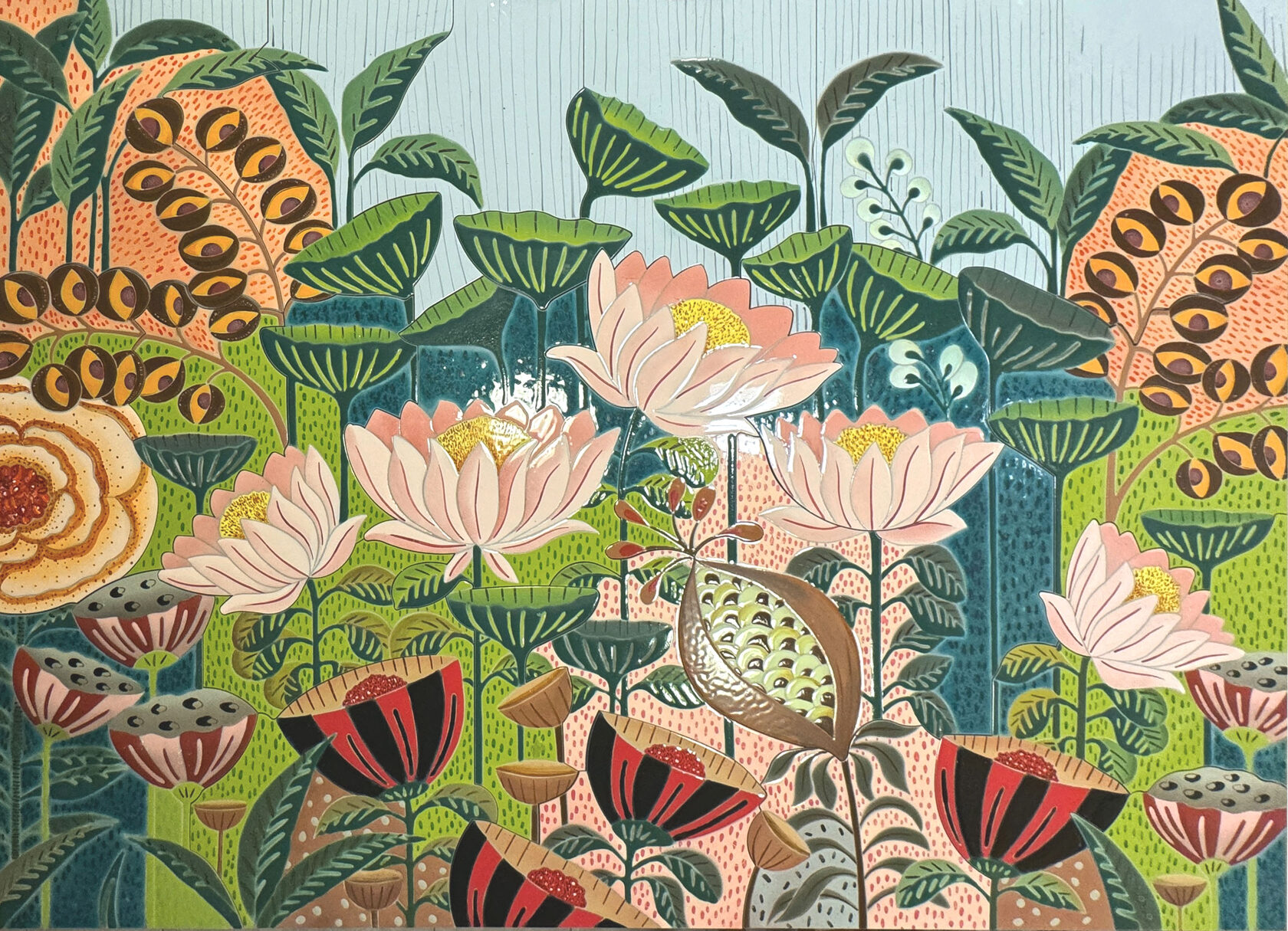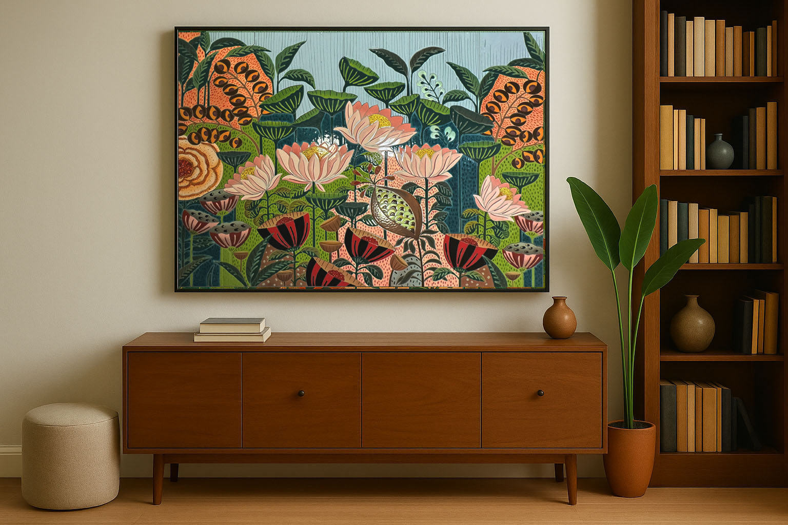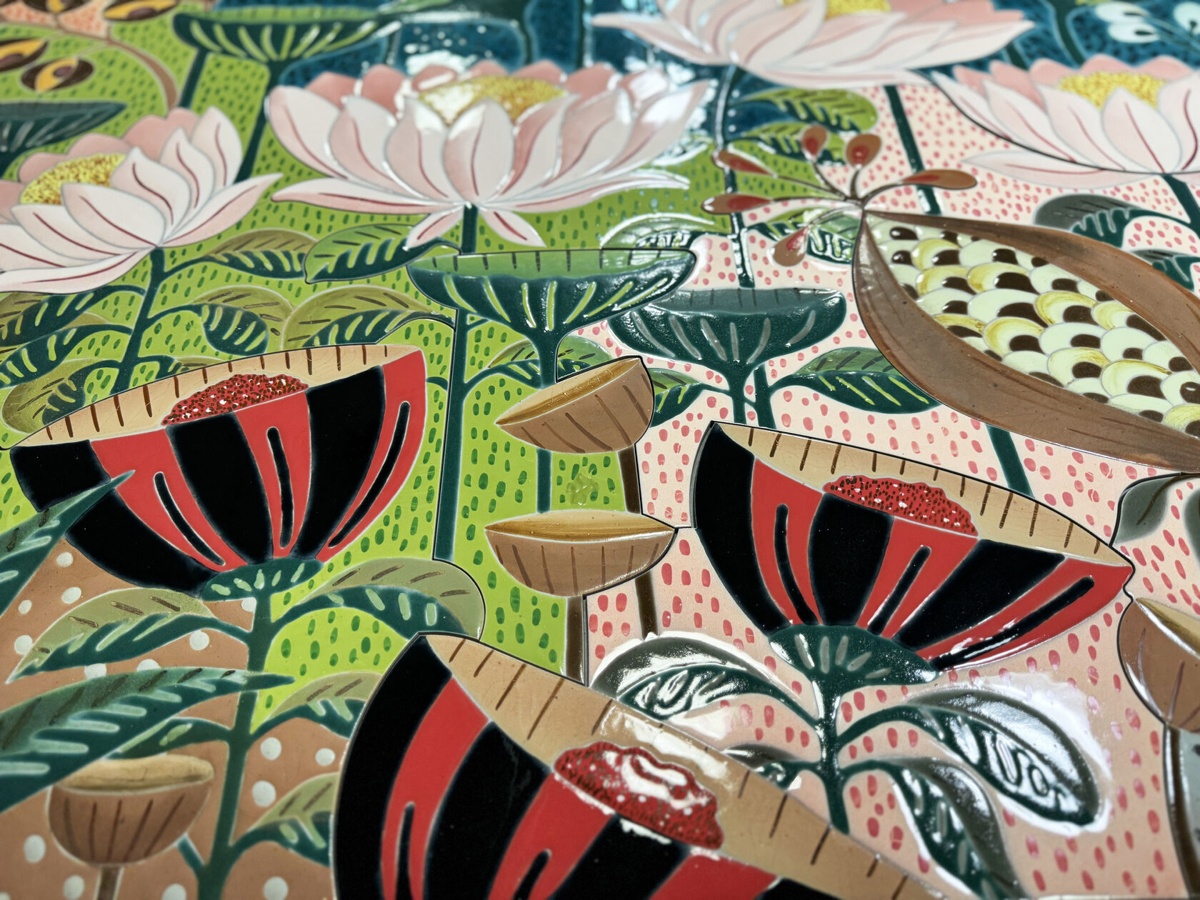 Арт-керамика всё чаще используется как декоративный акцент. Панно в интерьере работает не просто как отделка, а как полноценная картина: задаёт настроение и формирует атмосферу комнаты. Фактура и рельеф усиливают эффект живого присутствия, а свет подчёркивает глубину и детали композиции.